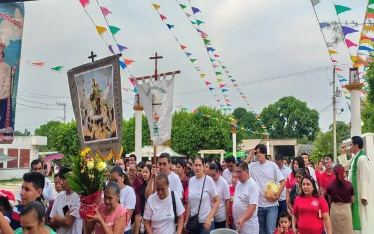 En el Ejido Huimango segunda sección, La Mona, decenas de personas llevan a cabo peregrinaciones por las principales calles y caminos, para ir casa por casa, recaudando las ofrendas que los creyentes le ofrecen al Sagrado Corazón de Jesús en su día.