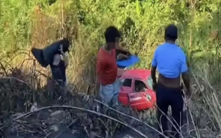 Con la ayuda de todos los ahí presentes y con otros vehículos, realizarían la extracción del automóvil siniestrado, sin la intervención de corporaciones policíacas y de autoridades.