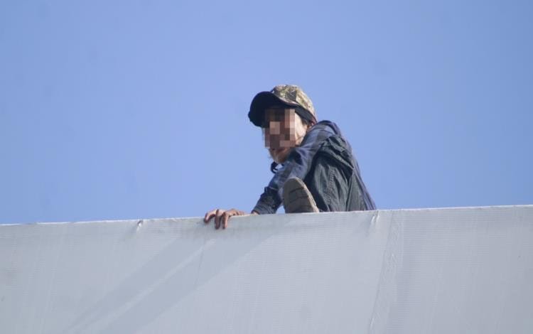 Señalando que en un momento él bajaría por su cuenta, tenemos miedo de acercarnos más y que en un intento se aviente, por ello le dimos la oportunidad de darle su espacio ya que se encuentra bajo alguna sustancia, hablaba solo"; pero nada lograron.