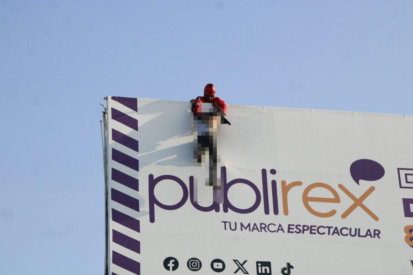 Denis jamás lo soltó y le colocó un seguro y al momento de que se rompió el espectacular policías estuvieron para ayudarlo a jalarlo y bajarlo al puente.