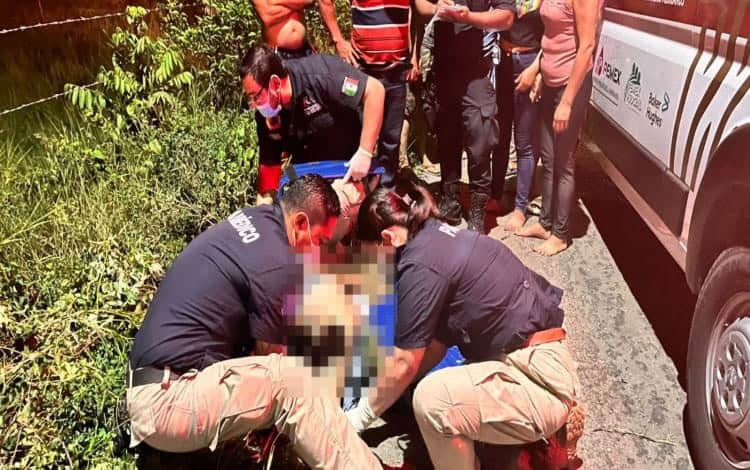 El lesionado fue identificado por familiares como Domitilo "N", y solicitaron el apoyo de los paramedicos de PC municipal, quienes le brindaron la atención pre hospitalaria y trasladaron a la clínica local para su valoración debido a las diversas fracturas expuestas en su cuerpo.