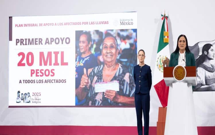 - Resaltó que, como parte del Plan Integral de apoyo a los afectados por las lluvias, se entregará el primer apoyo de 20 mil pesos a todos los damnificados en los estados de Querétaro, San Luis Potosí, Puebla y Veracruz, del 22 al 29 de octubre, mientras que en Hidalgo será del 25 de octubre al 5 de noviembre.