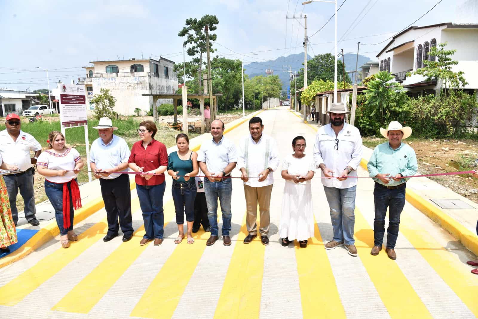 - En su recorrido por diversas localidades de Teapa, el titular del Poder Ejecutivo cortó el listón inaugural de la rehabilitación de red de agua potable, de drenaje sanitario y de alumbrado público, así como banquetas y guarniciones y pavimentación con concreto hidráulico de la calle Macuilis, de la colonia La Sierra Sección Arroyos, acciones que benefician a 5 mil 314 habitantes.