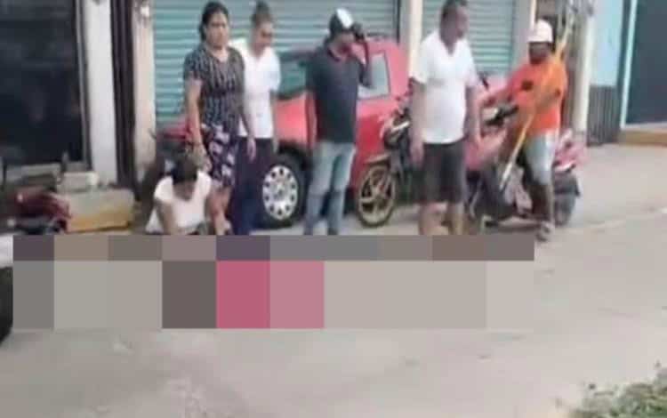 El incidente ocurrió a la altura de la entrada que conduce a la colonia Morelitos, cuando, por un descuido, la conductora perdió el control de su vehículo y derrapó sobre el pavimento.