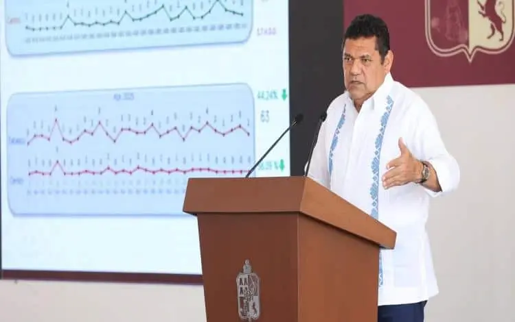- La estrategia de seguridad implementada por el Gobierno del Pueblo, en coordinación con las fuerzas federales, funciona, continúa dando resultados, y permitió que solamente durante el mes de abril se registrará en Tabasco una reducción de 44.24 por ciento en la tasa de homicidios dolosos en comparación con el mismo ciclo de 2024, subrayó el Gobernador Javier May Rodríguez.