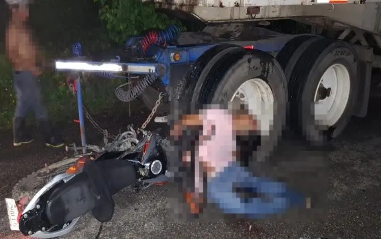 De acuerdo con testigos, un motociclista que circulaba a exceso de velocidad y sin equipo de protección chocó contra la parte trasera de una góndola estacionada. El fuerte impacto destrozó la motocicleta y provocó múltiples fracturas al conductor, quien quedó sin vida detrás de la llanta del pesado vehículo.