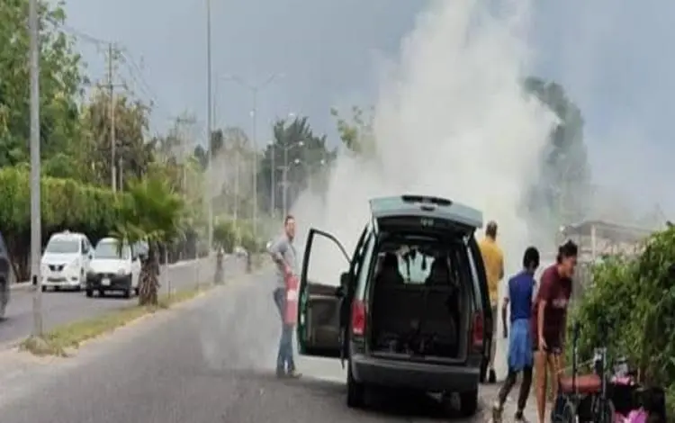 De acuerdo con testigos, el siniestro se originó presuntamente por un corto circuito en el área del motor, lo que provocó un conato de incendio.
