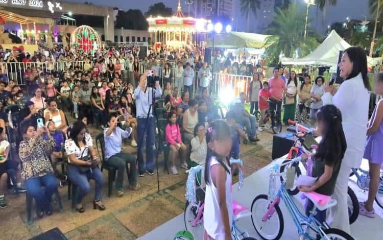 La alcaldesa Yolanda Osuna Huerta convivió con niñas, niños y familias en la Plaza de la Revolución, donde se realizaron dinámicas y concursos, se partió la tradicional rosca de Reyes y se vivió una celebración entre miles de luces y atracciones.