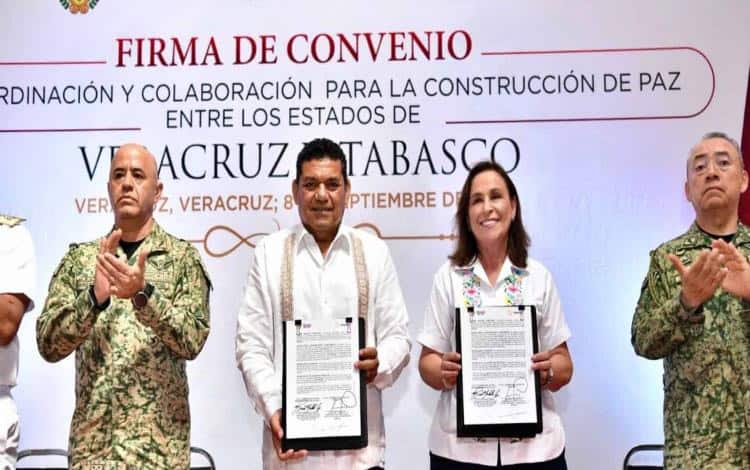 - El Gobierno del Pueblo que encabeza Javier May Rodríguez y su homólogo de Veracruz, representado por la Gobernadora Rocío Nahle García, llevaron a cabo la firma del Convenio de Colaboración y Coordinación para la Construcción de la Paz entre ambos estados, con la finalidad de fortalecer la cooperación en materia de seguridad, cerrarle el paso a la delincuencia y garantizar que los límites territoriales no sean obstáculos para la acción de las autoridades.