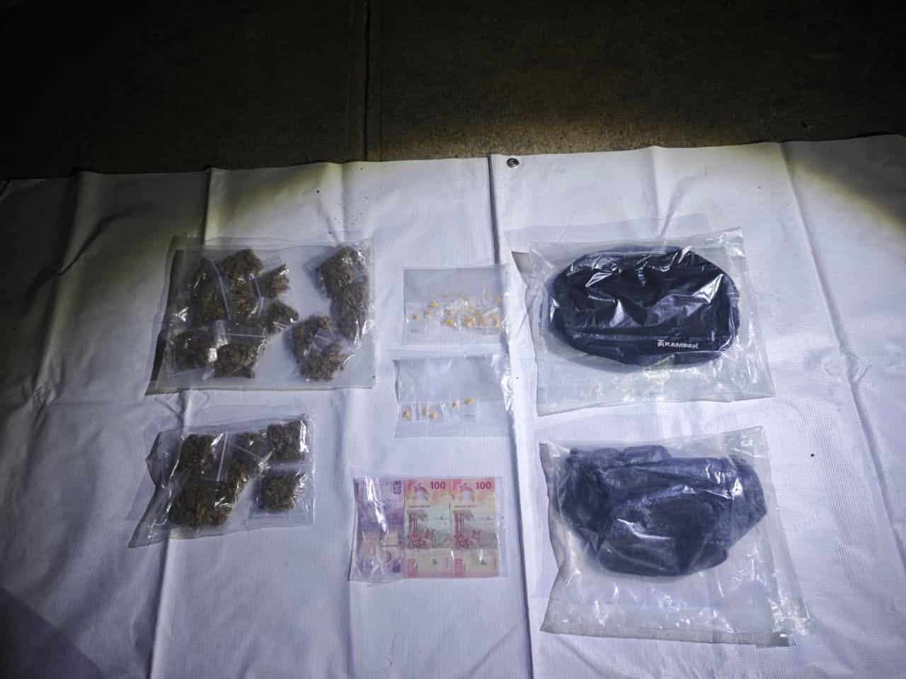 a Olvin Geovani "N", de 35 años, y Emanuel "N", de 27 años, a quienes se les aseguraron bolsitas transparentes con hierba seca color verde, con características similares a la marihuana;