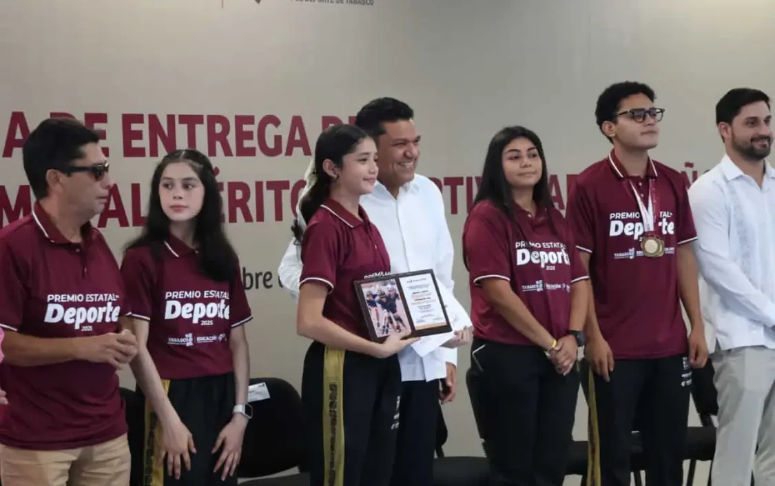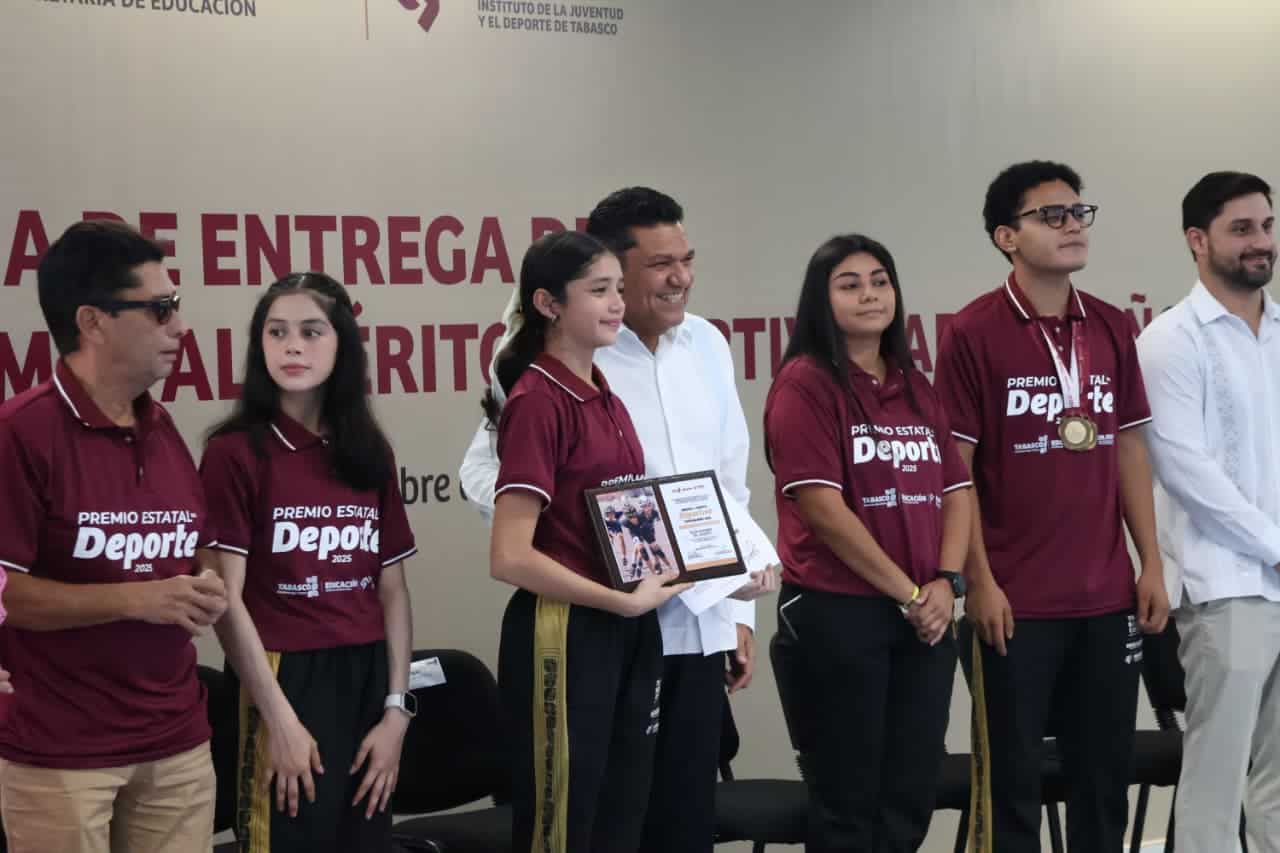 El gobernador de Tabasco, Javier May Rodríguez, galardonó a los ganadores del Premio Estatal del Deporte y Mérito Deportivo Tabasqueño 2025.