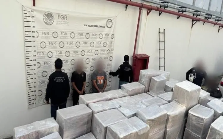 - Un fuerte golpe al narcotráfico se registró ayer, por parte de elementos de la Fiscalía General de la República (FGR) con sede en Tabasco, tras asegurar más de una tonelada de marihuana con un valor superior a los 14 millones de pesos. Durante el operativo dos personas fueron detenidas.