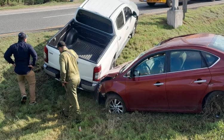 Daños materiales no cuantificados fue el saldo de una colisión por alcance, registrada sobre la carretera federal Villahermosa–Cárdenas, a la altura del tramo conocido como La Vereda.