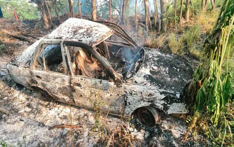 El vehículo quemado es un Nissan Tsuru con placas de circulación WPW-774-B del estado de Tabasco color verde claro modelo 2006 propietario José Reyes May con domicilio en la carretera principal de la Colonia Libertad de Allende de Centla, Tabasco, por el momento se desconoce si sea la persona hallada sin vida.