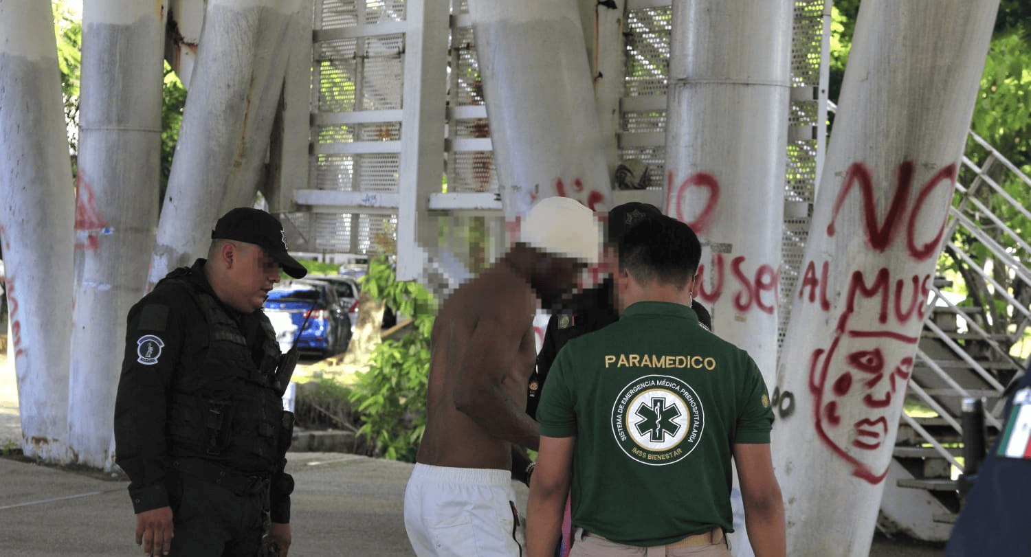 Debajo de la estructura del Musevi, sobre Paseo Tabasco, en el Parque Tomás Garrido Canabal, se registró una riña entre dos sujetos de origen hondureño que, armados con cuchillos, terminaron con múltiples lesiones.