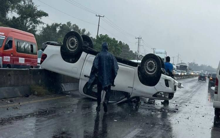 El accidente múltiple ocurrió en el kilómetro 14 a escasos metros de la Universidad Tecnológica a las 6 de la mañana, ante una llovizna copiosa.