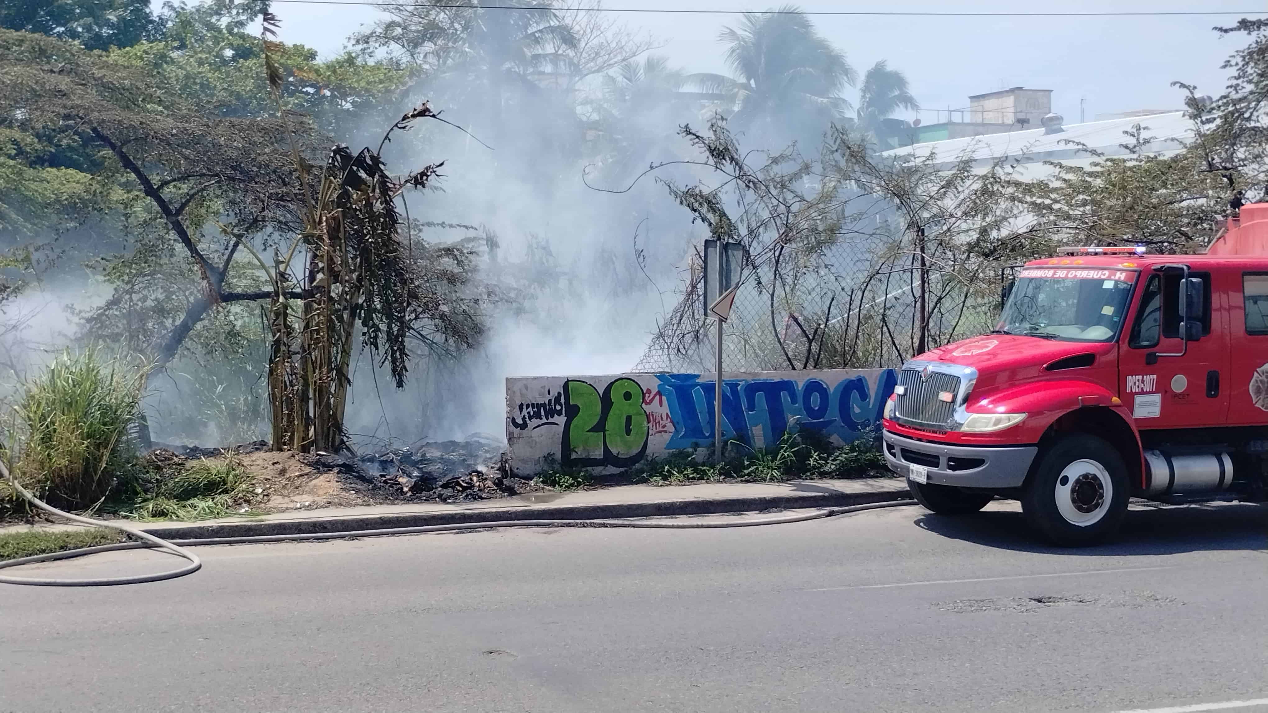 - La quema de pastizal en un predio ubicado en la Avenida Industria Nacional Mexicana, provocó la movilización de los bomberos, las llamas amenazaban con extenderse al estacionamiento de un conjunto habitacional.