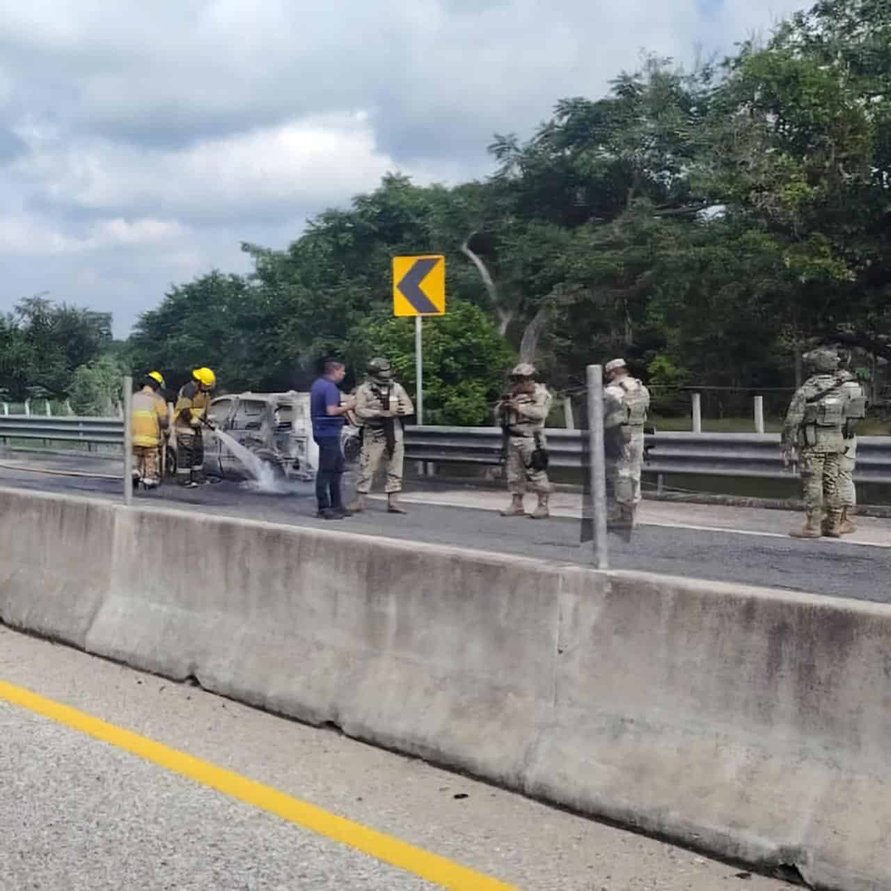 Al lugar arribaron elementos de la Policía Estatal y Guardia Nacional que se dieron la tarea de resguardar la circulación y confirmaron que ya se estaba quemando en un 95%, revisaron a los alrededores y no había nadie que respondiera por el vehículo.