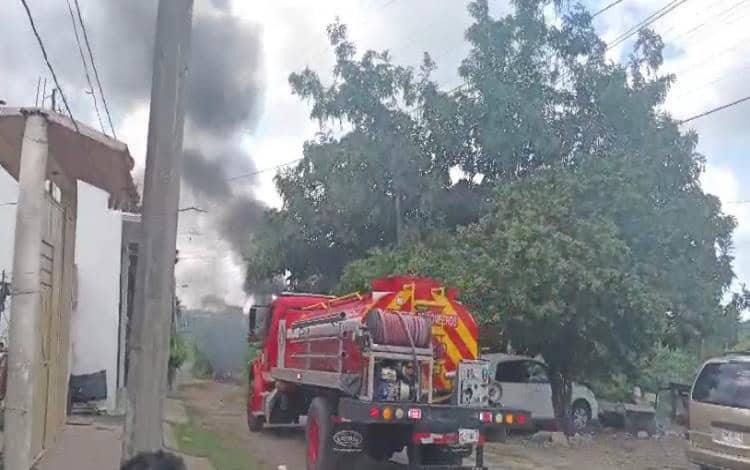 Incendio de pastizal iniciado al parecer, por un indigente, peovoc+o que se quemaran varios vehículos de un taller que se encontraban estacionados sobre la calle Álvaro Obregón y Socialista de la colonia Atasta.