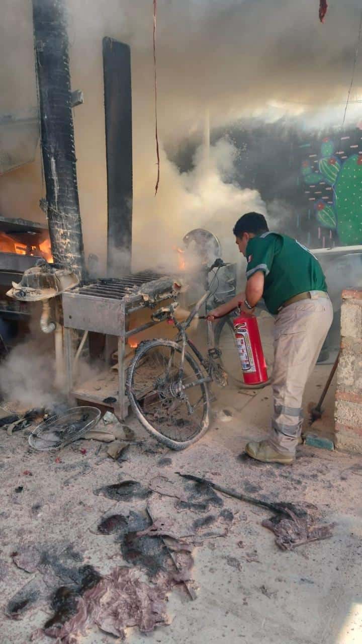 Quién manifestó que el incendio fue provocado por una fuga de gas al momento de que uno de sus trabajadores iba a encender las hornillas se registró de flamazo, no hubo lesionados ya que salieron de inmediato.