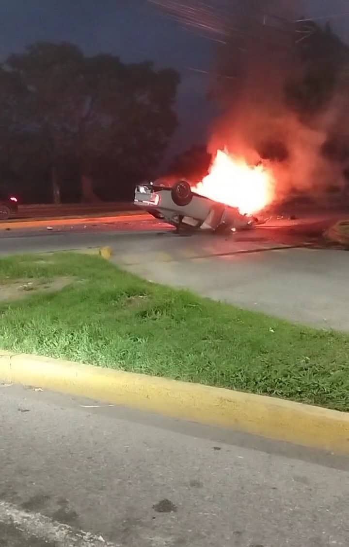 Al filo de las 5 de la mañana de ayer lunes se registró un aparatoso accidente en el Periférico de Villahermosa, donde el conductor de un vehículo particular perdió el control, chocó contra un árbol, dio varias volteretas y terminó cayendo aproximadamente 100 metros más adelante; donde se incendió de inmediato.