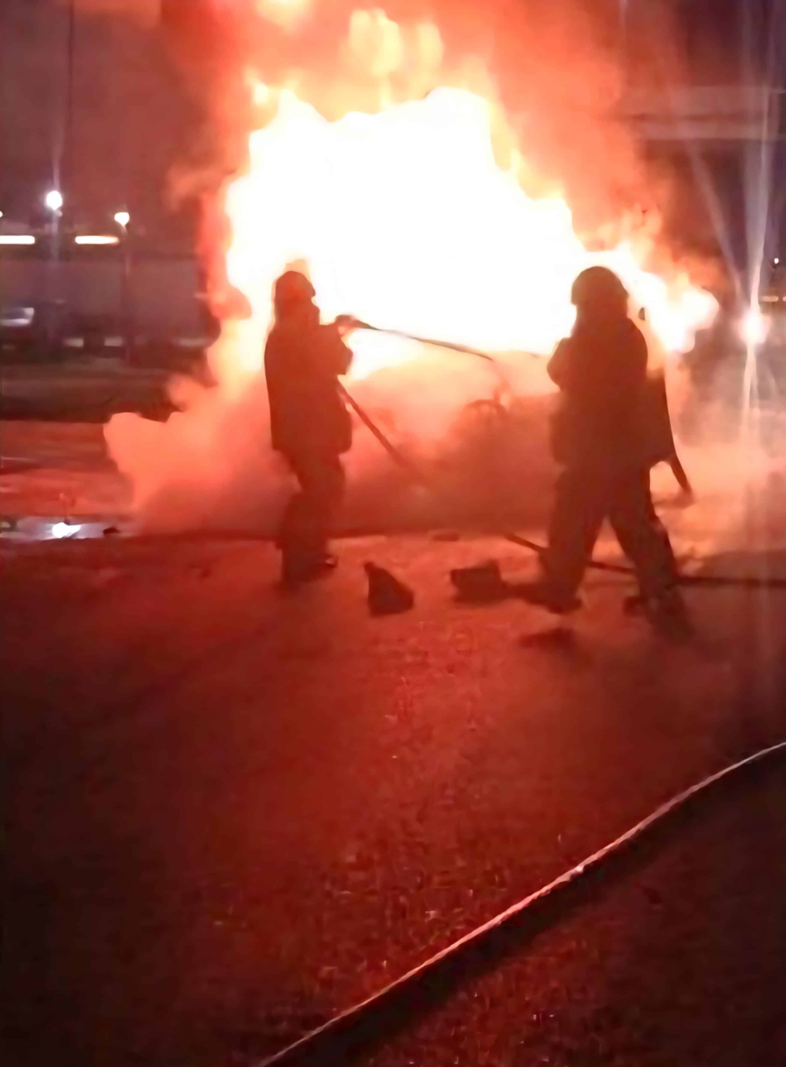 - Tras el choque, la unidad se proyectó y terminó a un costado del hotel Crowne Plaza, envuelta en llamas.
