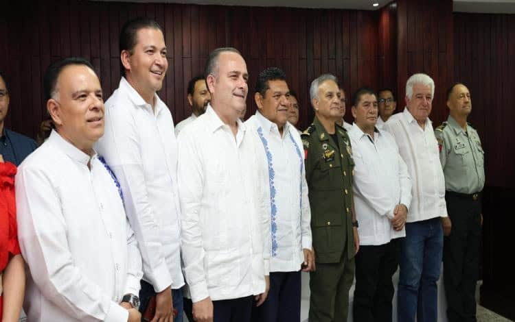 Al evento asistieron también el comandante de la 30° Zona Militar, Miguel Ángel López Martínez; el almirante de la Tercera Región Naval, Juan Martín Aguilar Morales; el fiscal general del Estado, Óscar Tonathiu Vázquez Landeros y la secretaria de Educación, Patricia Iparrea Sánchez, entre otros.