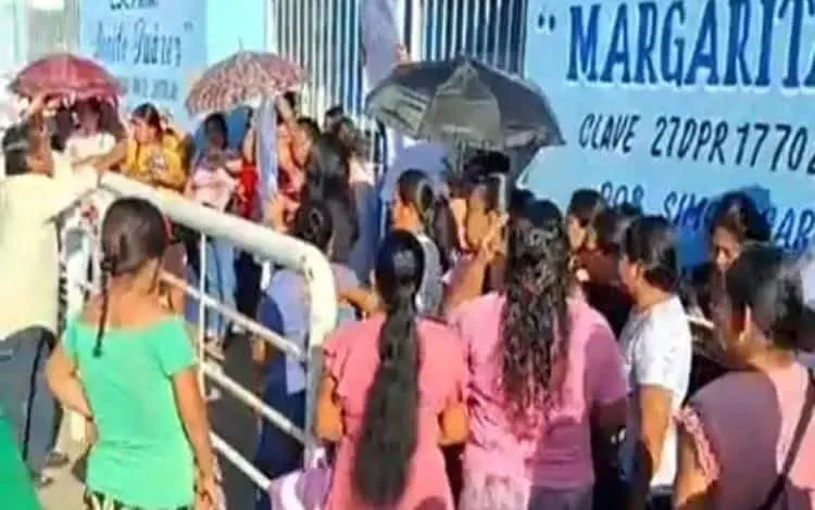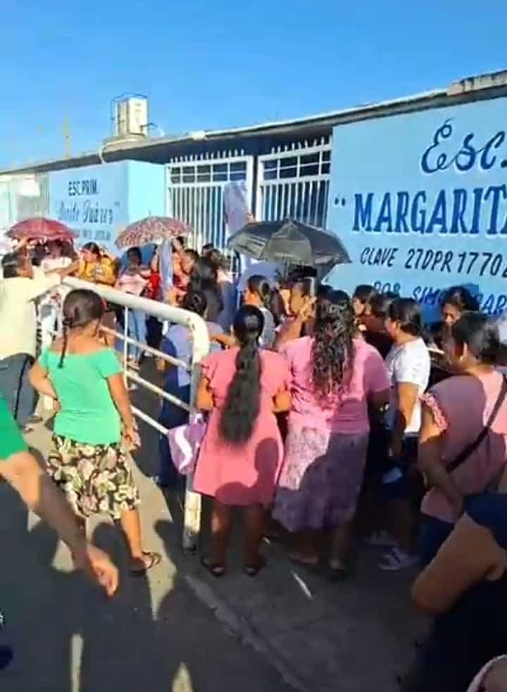 La mañana de ayer lunes, padres de familia de la Escuela Primaria Margarita Maza de Juárez del poblado Simón Sarlat, tomaron las instalaciones y cerraron el acceso al personal docente en protesta por un presunto desvío de 500 mil pesos destinados para mejoras escolares.