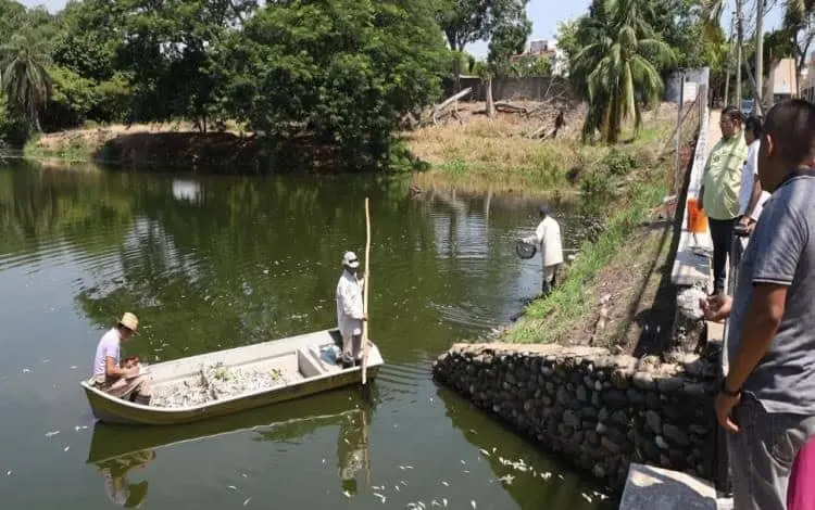 Ante el reporte de una mortandad de peces en la Laguna de las Ilusiones, la Secretaría de Medio Ambiente y Desarrollo Sostenible (SEMADES) realizó un recorrido de inspección en coordinación con especialistas de la División Académica de Ciencias Biológicas de la Universidad Juárez Autónoma de Tabasco (UJAT), liderados por el Dr. Arturo Garrido Mora.