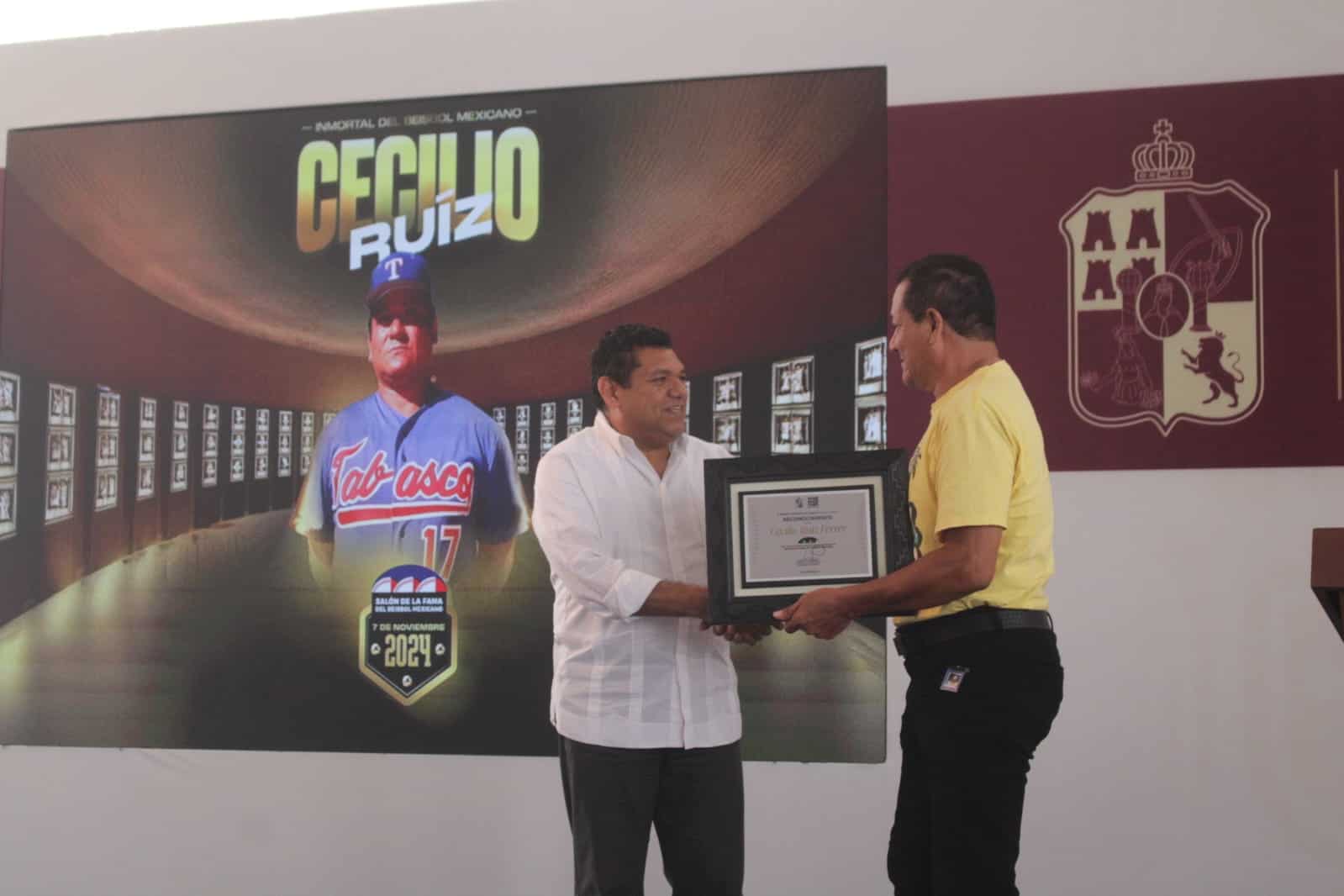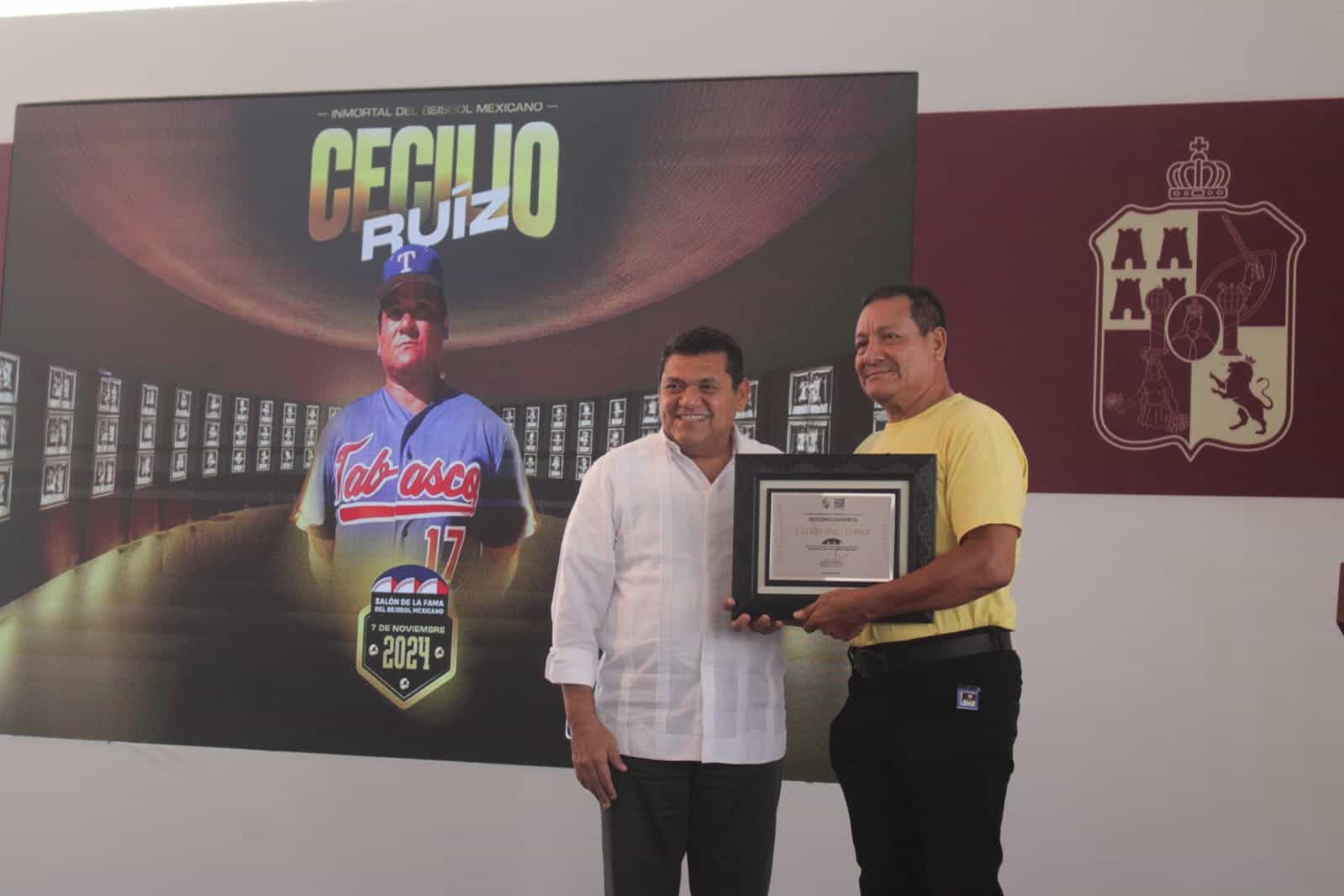El mandatario estatal enalteció la trayectoria del "Látigo de Balancán", quien semanas atrás fue entronizado al Salón de la Fama del Beisbol Mexicano Clase 2024 en Monterrey, Nuevo León.
