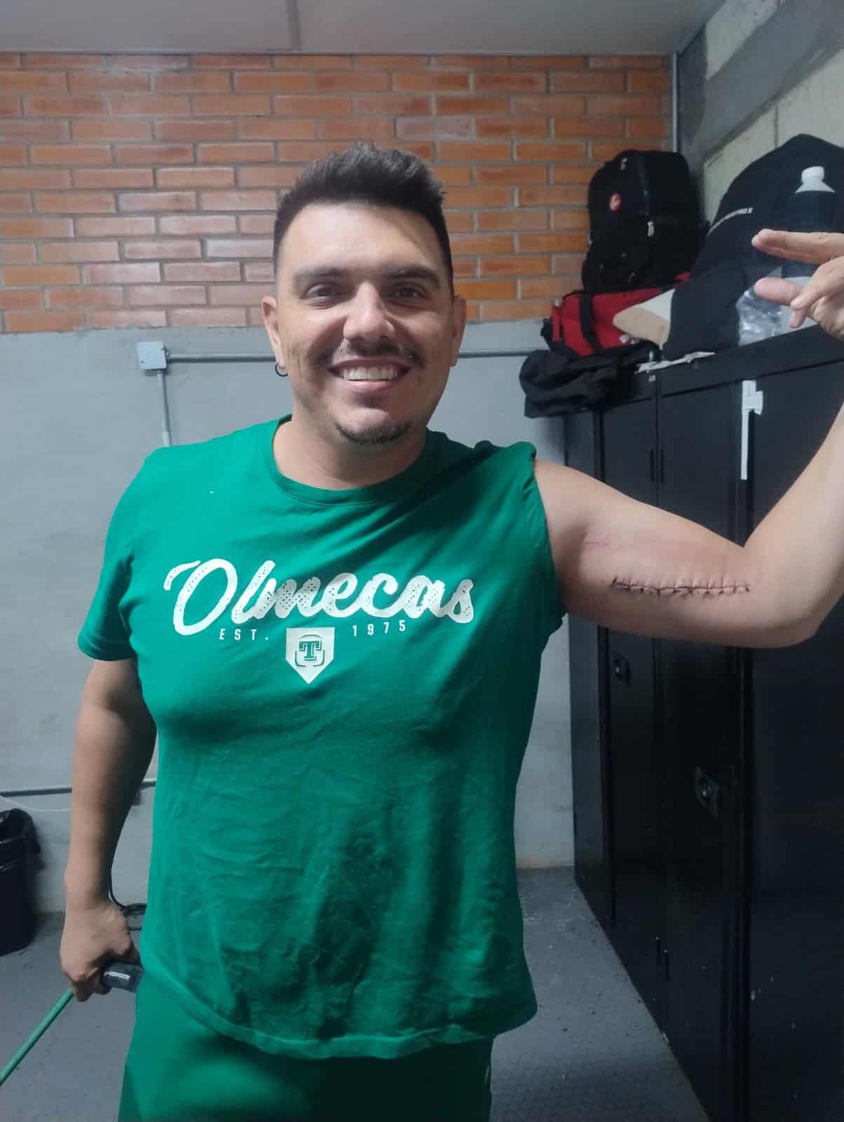 En su brazo se le observa 19 puntadas y toda marcha viento en popa para que se recupere.