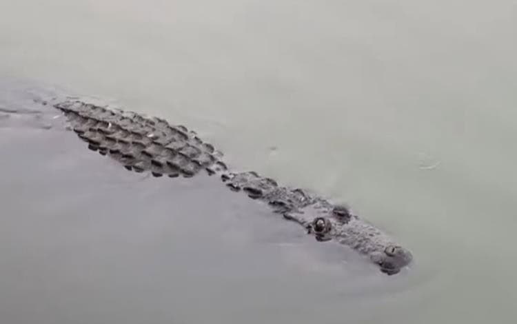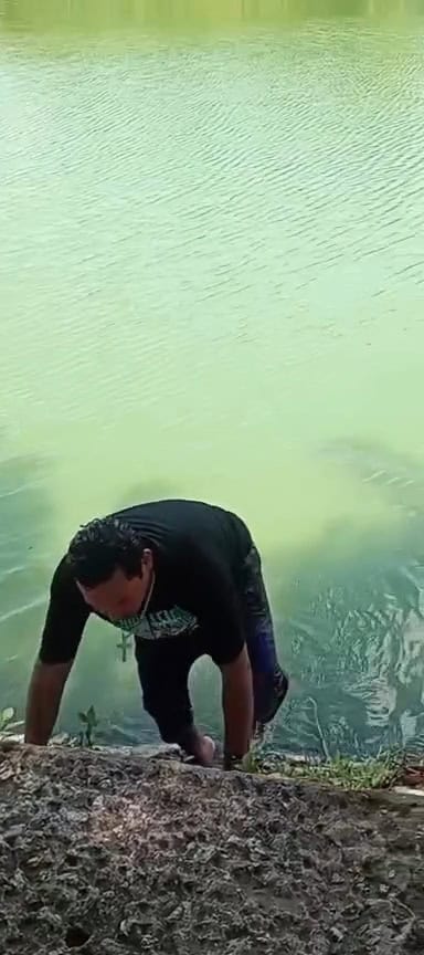 En un video difundido en redes sociales, una joven relata de que un masculino identificado como Ulises "N", se metió a retar a un lagarto a orillas de la Laguna de las Ilusiones.