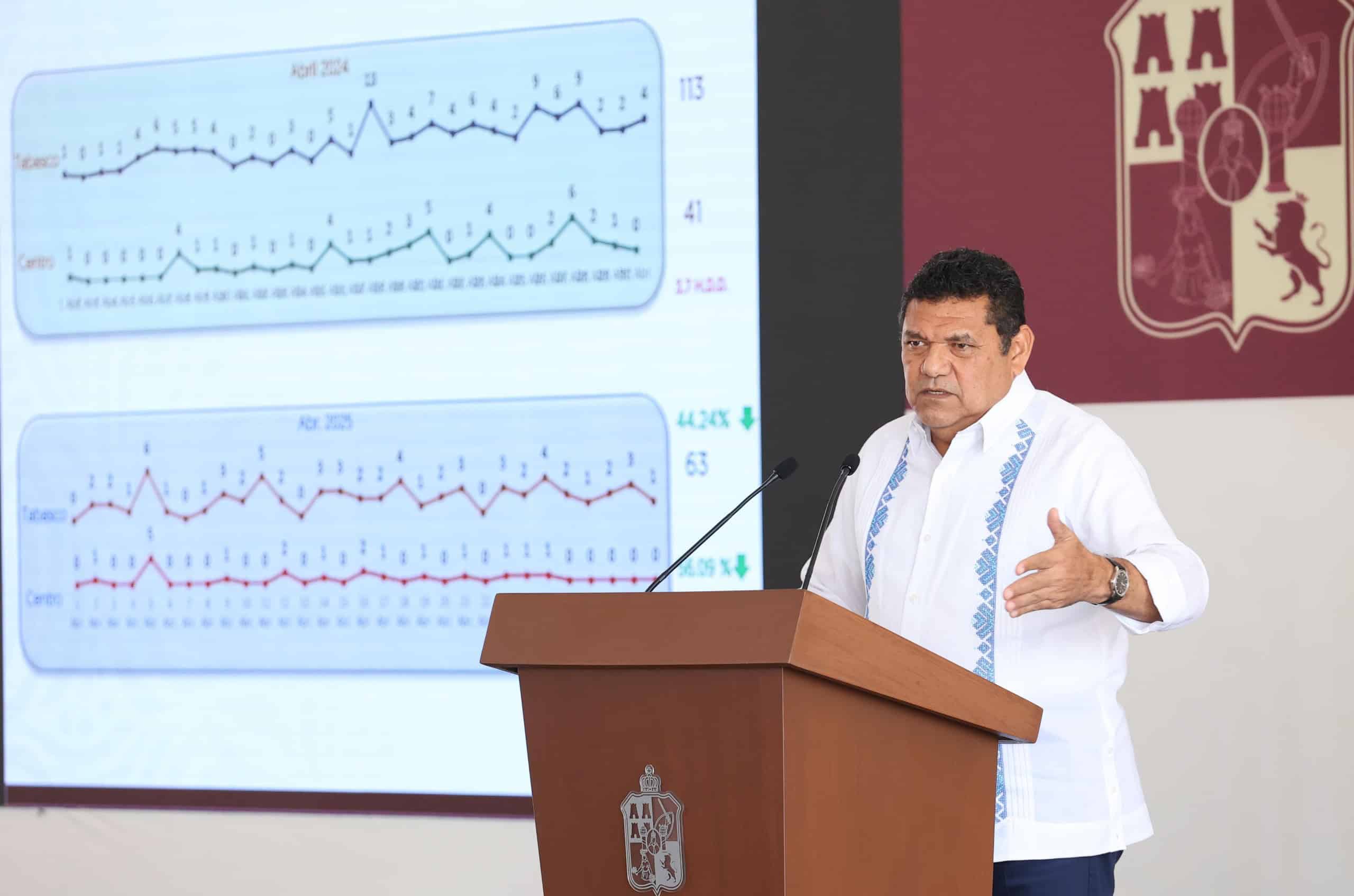 La estrategia de seguridad implementada por el Gobierno del Pueblo, en coordinación con las fuerzas federales, funciona, continúa dando resultados, y permitió que solamente durante el mes de abril se registrara en Tabasco una reducción de 44.24 por ciento en la tasa de homicidios dolosos en comparación con el mismo ciclo de 2024, subrayó el Gobernador Javier May Rodríguez.