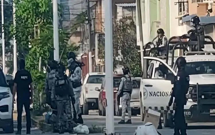 Elementos de la Policía Municipal, Estatal y de la Guardia Nacional acordonaron el área, mientras que en distintas calles cercanas se implementaron operativos y cateos para intentar ubicar a los responsables.