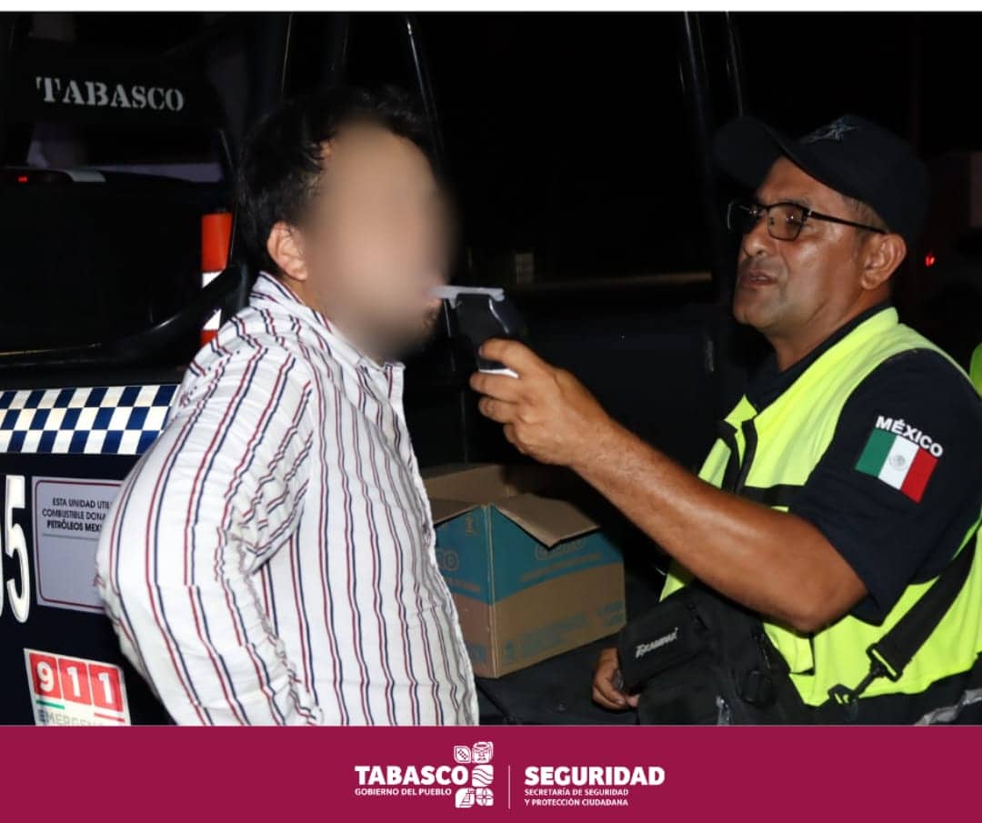 La Secretaría de Seguridad y Protección Ciudadana (SSPC), a través de la Policía Estatal Preventiva (PEP) y la Policía Estatal de Caminos (PEC), realizó este viernes el operativo Alcoholímetro en la capital tabasqueña, con el objetivo de prevenir accidentes viales, salvar vidas y fomentar una conducción responsable.