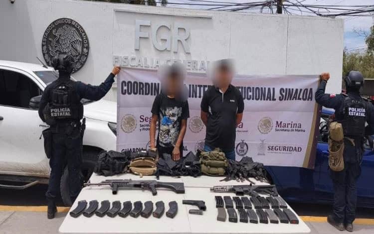 Dos civiles fueron detenidos y un importante arsenal fue asegurado durante un operativo realizado por policías estatales en coordinación con fuerzas federales en la comunidad de San Pedro, en el municipio de Navolato.