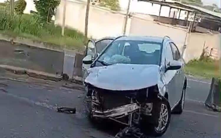 El accidente generó un tráfico lento a la altura del kilómetro 10+900 poco antes de llegar a la ranchería Lagartera primera sección del municipio de Centro, presuntamente el masculino se durmió al volante y colisionó contra el muro de contención ocasionando daños enormes a su unidad y a la estructura de concreto.