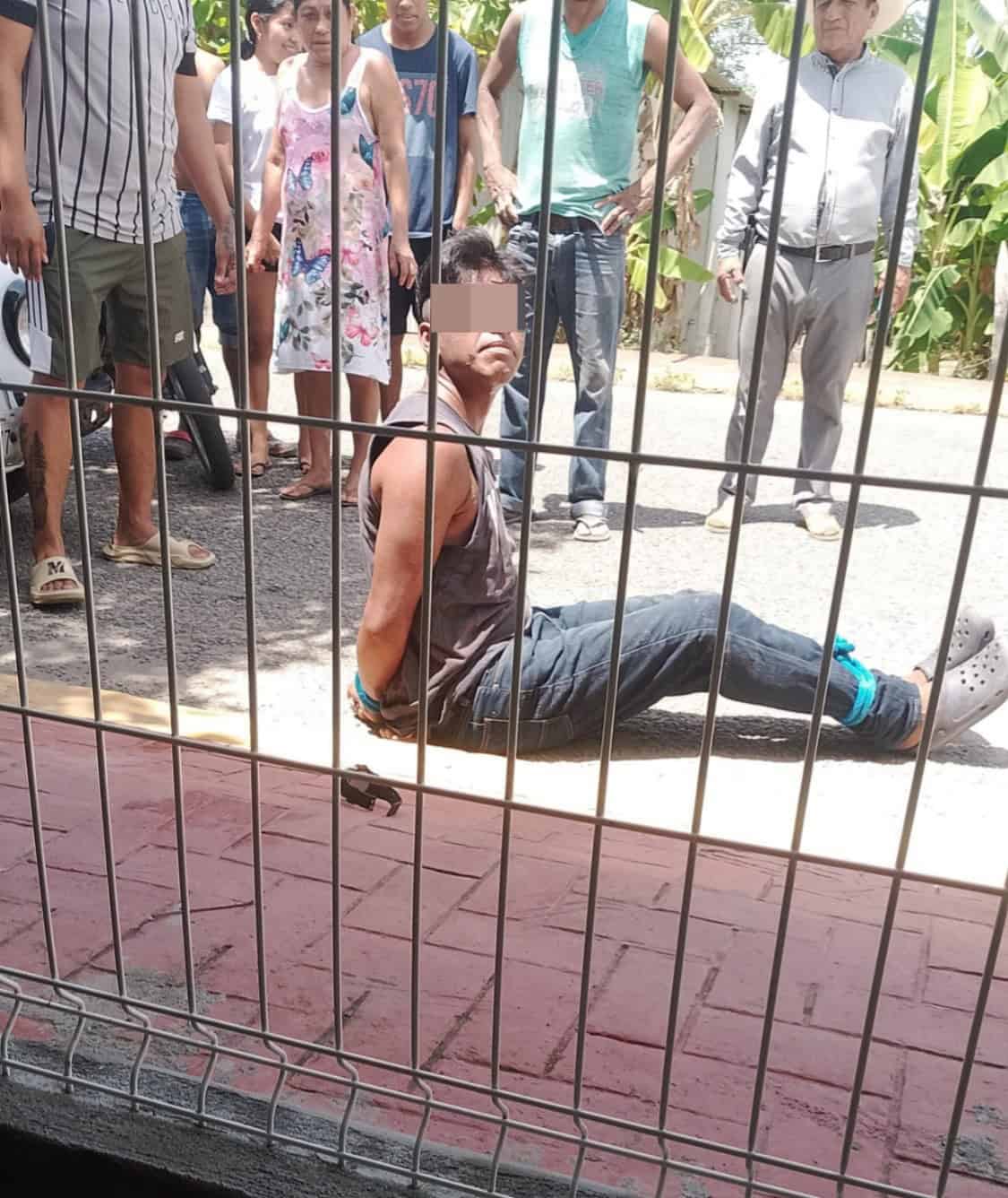 Bastaron segundos para que la gente del poblado Tecoluta segunda sección, empezara a correrlo hasta asegurarlo; después lo amarraron de pies y manos para luego ser entregado a la policía local.