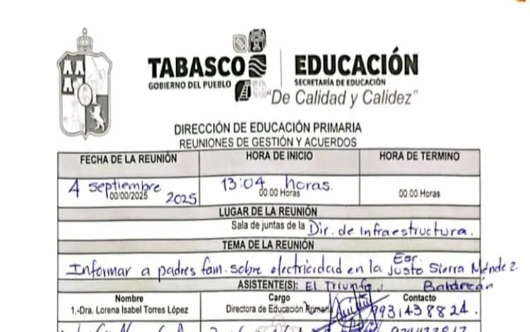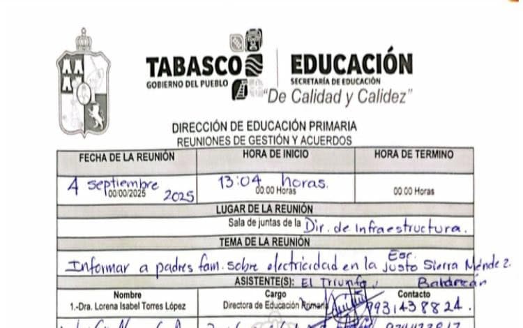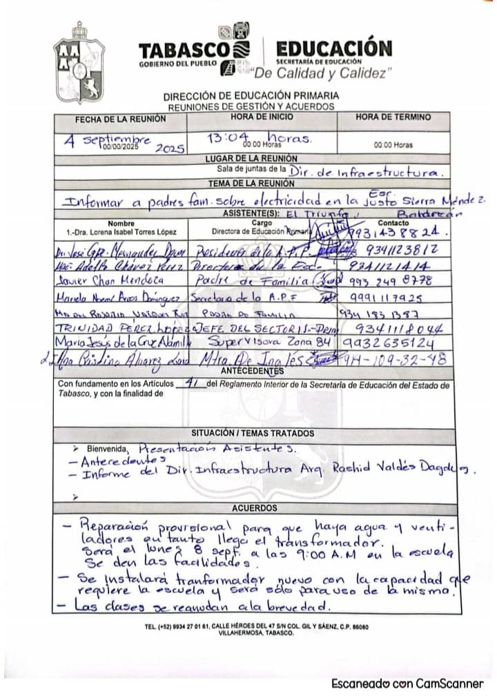 Luego de sostener un largo diálogo con la directora de escuelas primaria de la SETAB y firmar minuta de acuerdo, padres de familia de la escuela Justo Sierra Méndez, podrían abrir las instalaciones entre los días 8 y 9 de la próxima semana.