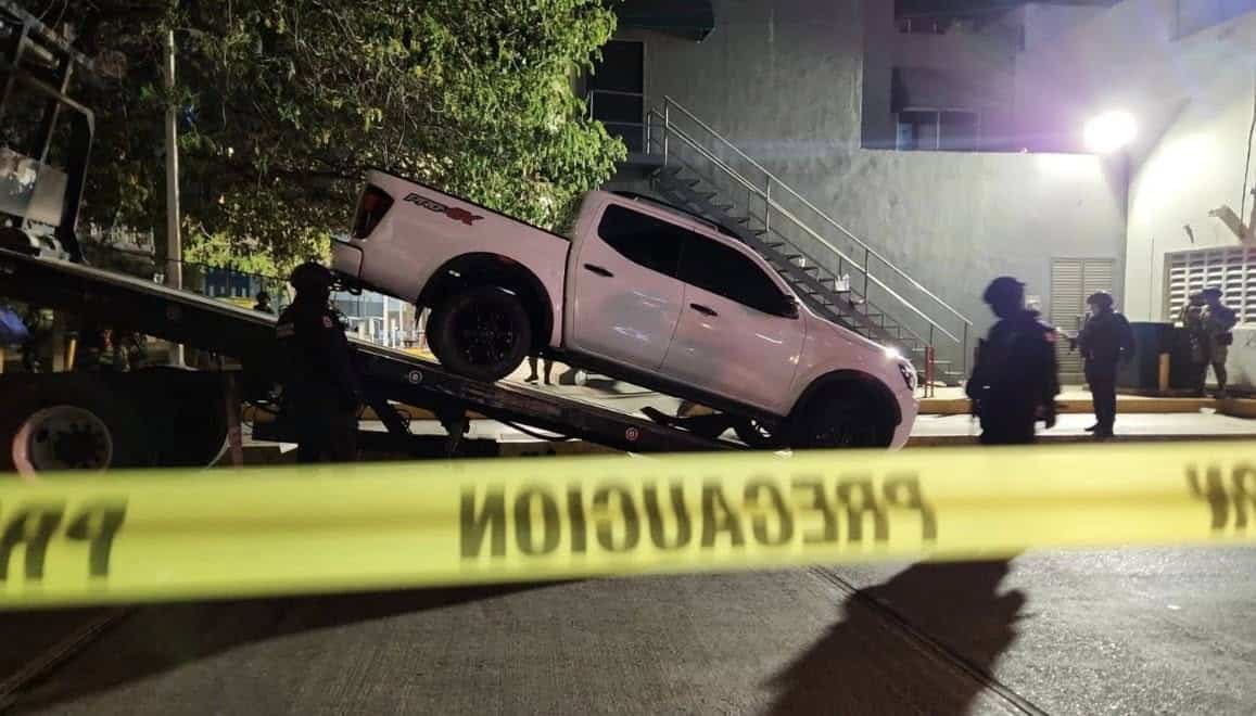 La camioneta asegurada presentó disparos de arma de fuego en la llanta delantera del lado derecho, unidad que fue trasladada a una pensión de vehículos mientras se realizan las investigaciones.