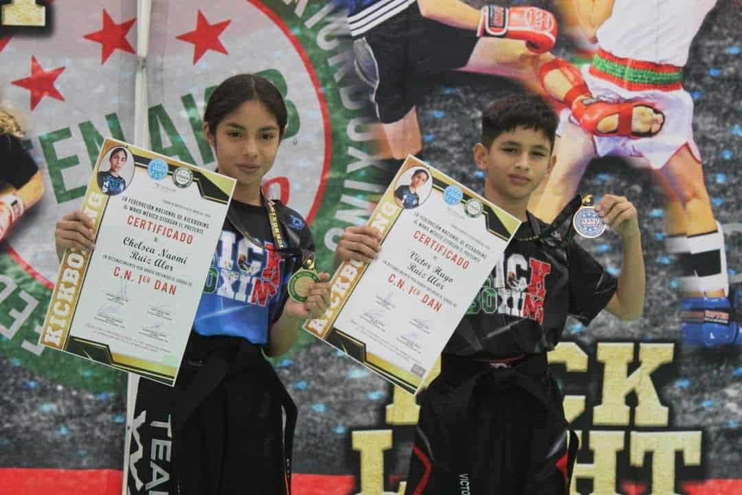 Los que se quedaron con el bronce fueron Emiliano Carrillo kick light hasta 47 kilos en 13-15 años y Daniela López Camacho en menos de 32 en 10-12 años.