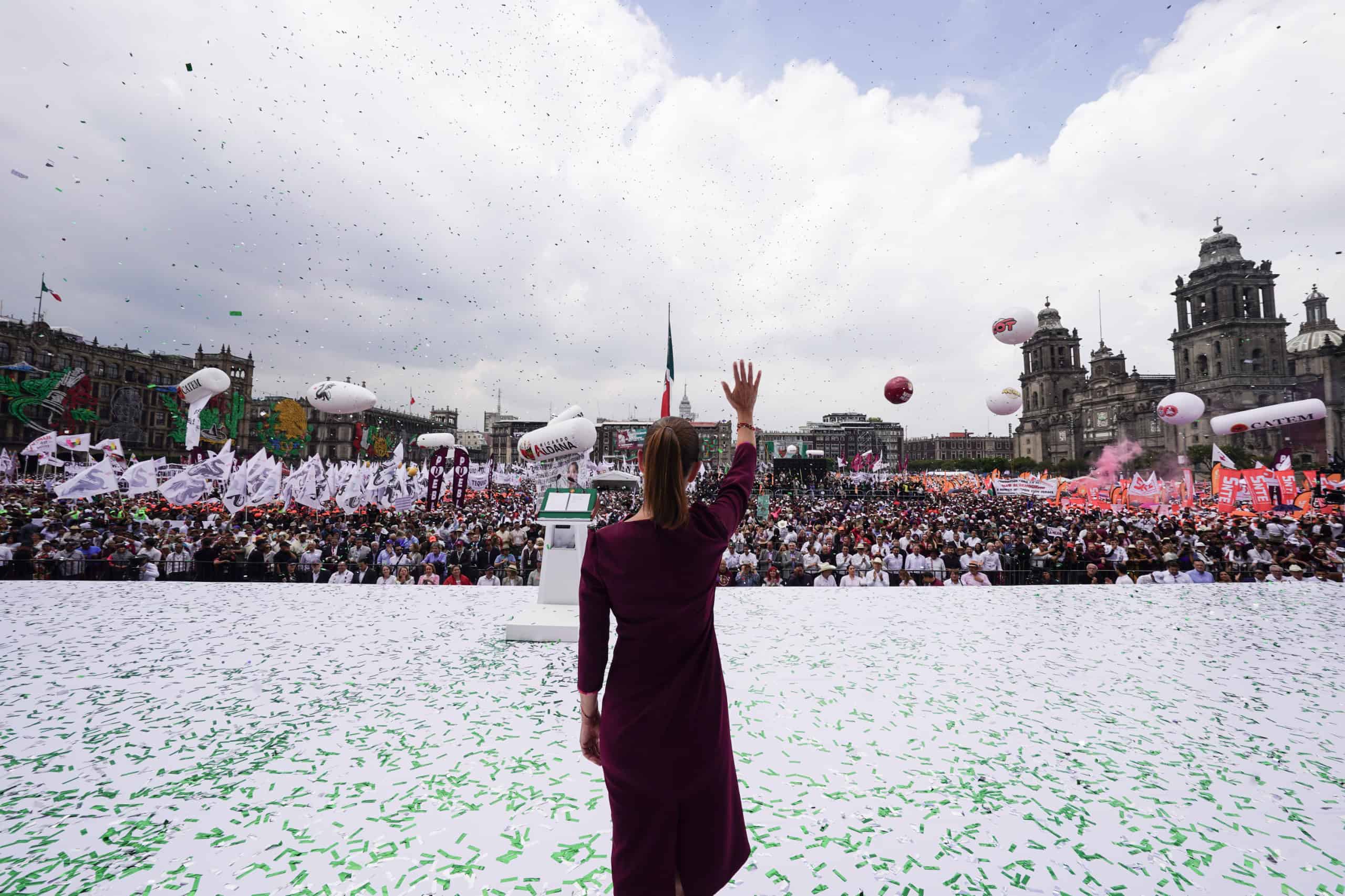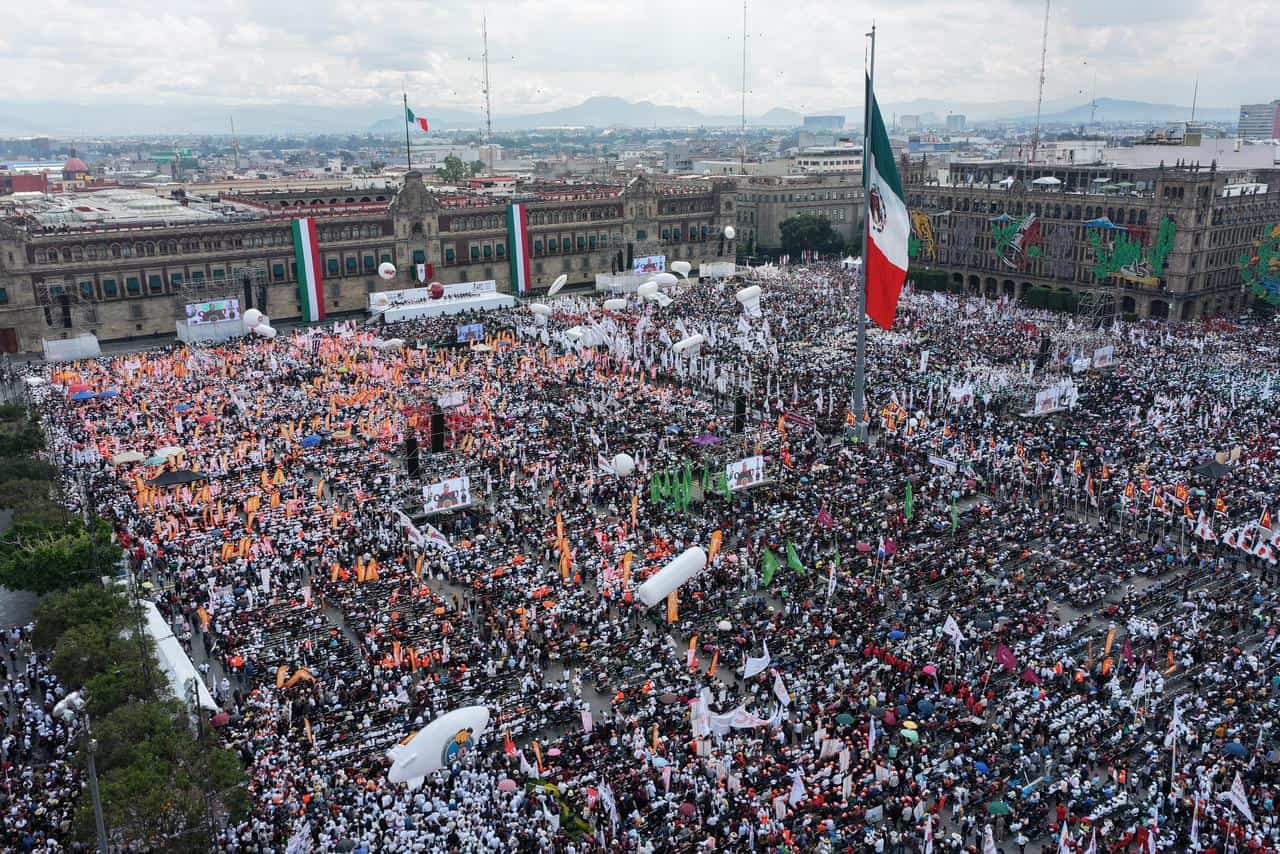 - Como la primera mujer Presidenta, la Jefa del Ejecutivo Federal, Claudia Sheinbaum Pardo, reafirmó que, "México va por el camino correcto", esto durante el cierre de su gira nacional de rendición de cuentas con motivo de su primer año de Gobierno, ante miles de mexicanas y mexicanos reunidos en el Zócalo de la Ciudad de México.