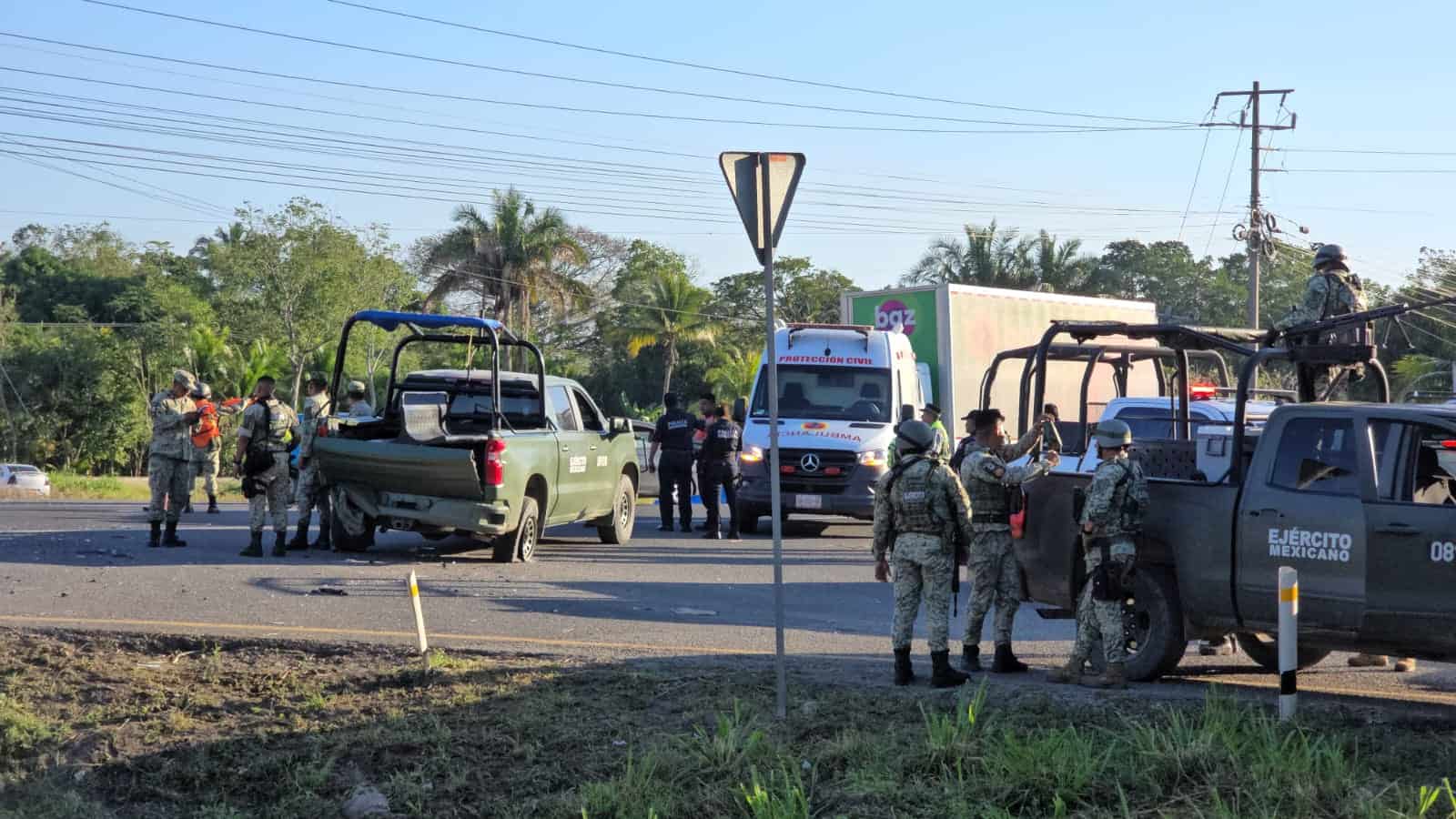 El conductor de la unidad pick up con número económico 0891318 salió de las instalaciones del 57 batallón de infantería, pero a la hora de incorporarse hacia la vía Coatzacoalcos - Cárdenas, éste trató de ganarle el paso a un vehículo compacto que circulaba sobre los carriles ´de alta´.