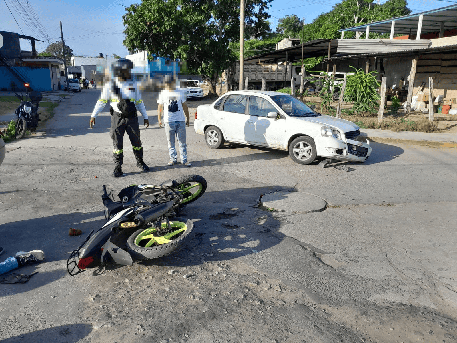 Al llegar a la esquina con la Calle Román Mendoza, el conductor de un automóvil, cuya identidad no fue revelada, salió intempestivamente de la vía lateral, impactando de lleno al motociclista.