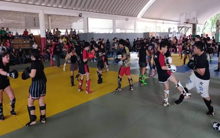 Cientos de artemarcialistas participaron en el tercer mega sparring de la Liga Tabasqueña de Muay Thai que se realizó en la Ciudad Deportiva de Villahermosa.