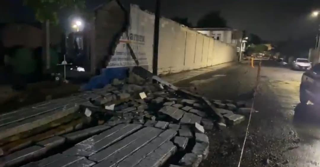 - En medio de una tormenta eléctrica y una fuerte ventolera que se registraron la noche de este jueves en la ciudad, se reportó la caída de la parte trasera de la barda perimetral del panteón central.