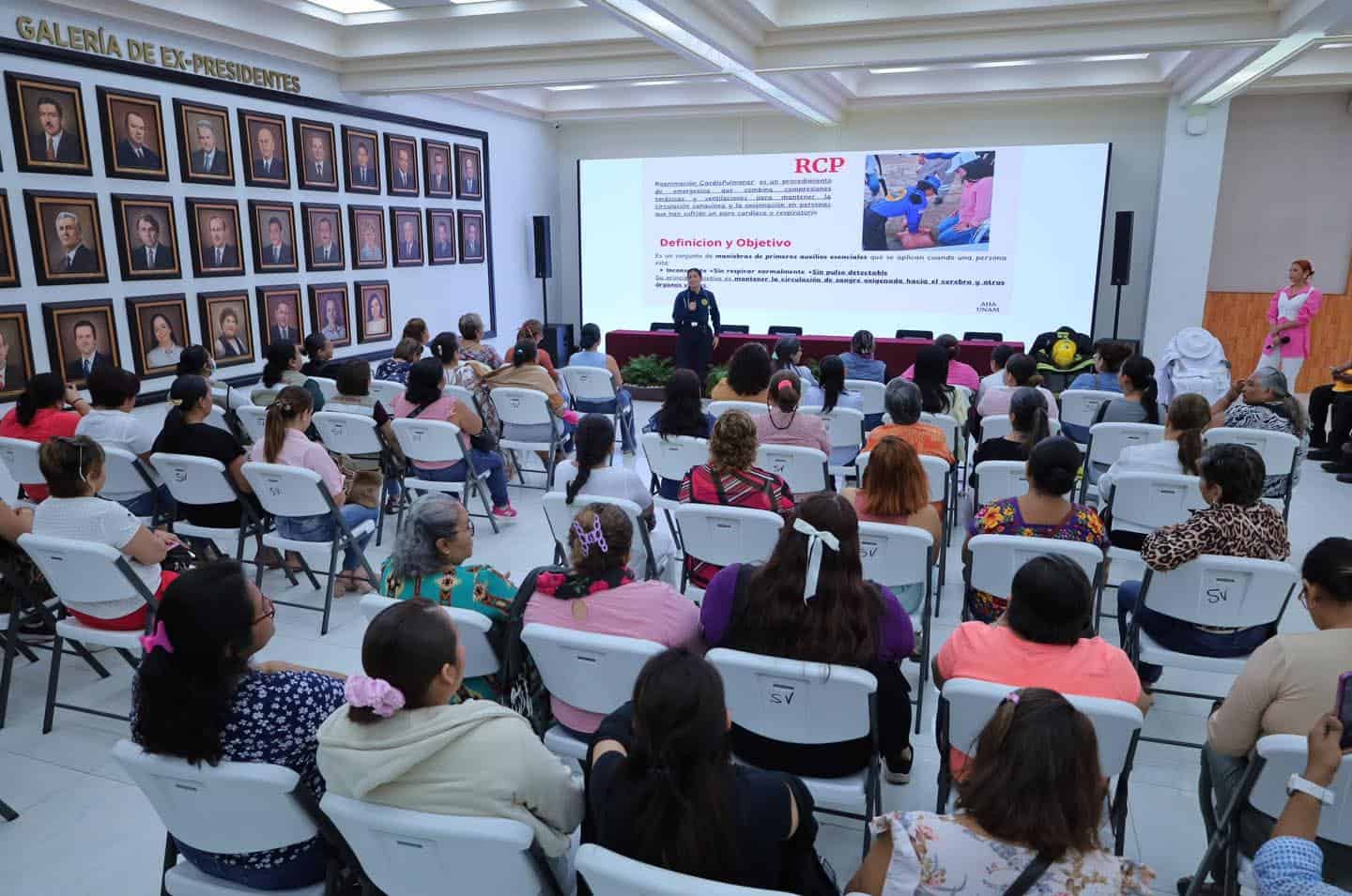 La actividad se llevó a cabo en el Salón Villahermosa del Palacio Municipal, donde las asistentes recibieron formación práctica en primeros auxilios, uso y manejo de extintores, acciones a seguir en caso de fugas de gas, atención ante mordeduras y picaduras de animales, así como el uso adecuado del equipo de protección personal.