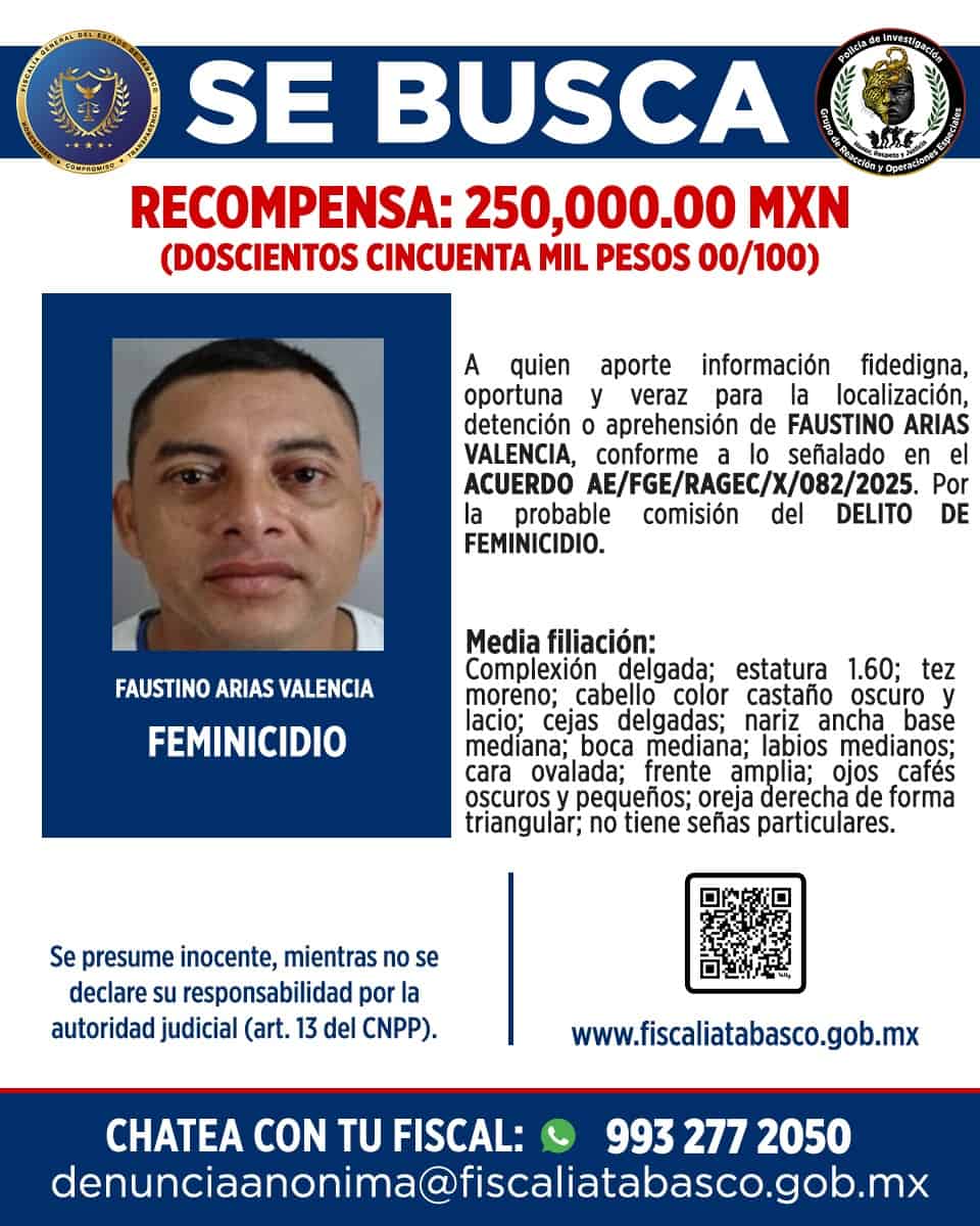 Como parte de su estrategia para combatir la impunidad en delitos de violencia de género, la Fiscalía destina 250 mil pesos por cada uno de los presuntos responsables, respaldados por los acuerdos oficiales AE/FGE/RAGEC/X/080 al 082/2025.
