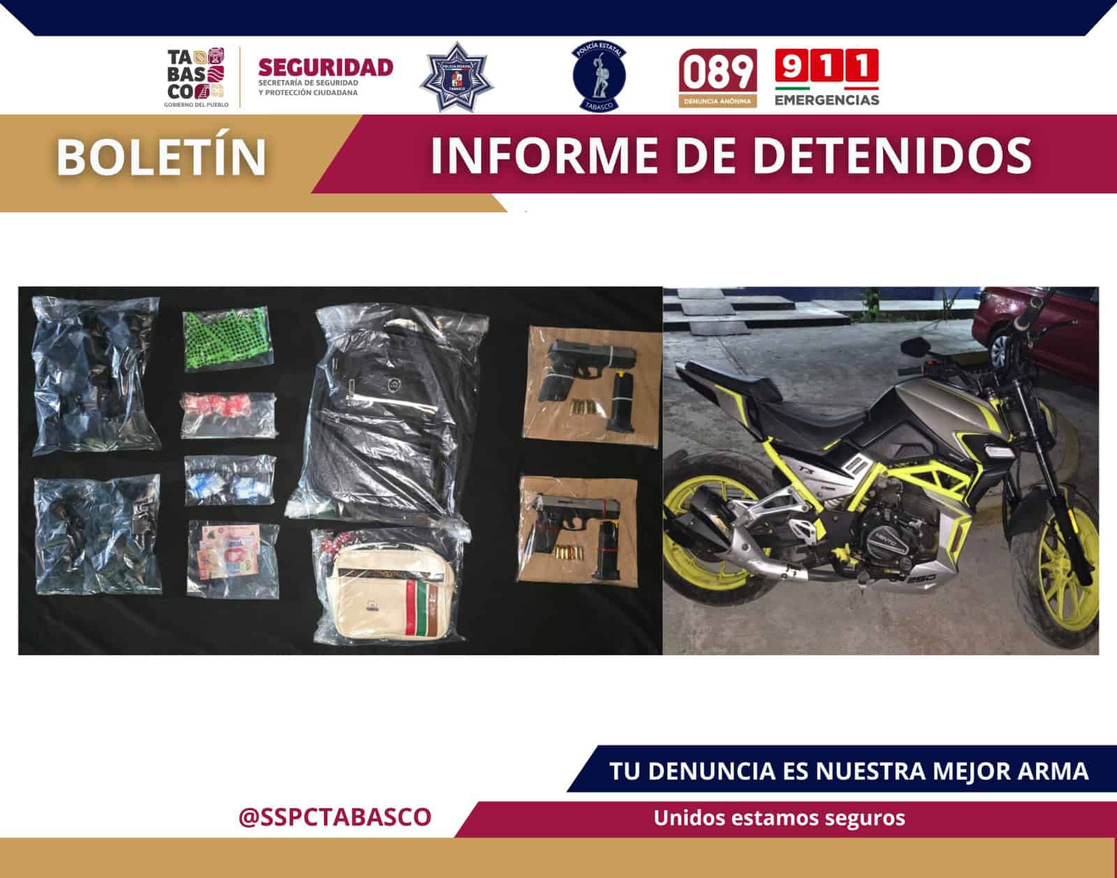 ASEGURAN SSPC Y FIRT OLMECA A DOS PERSONAS POR PRESUNTOS DELITOS CONTRA LA LEY GENERAL DE SALUD Y PORTACIÓN DE ARMAS DE FUEGO
