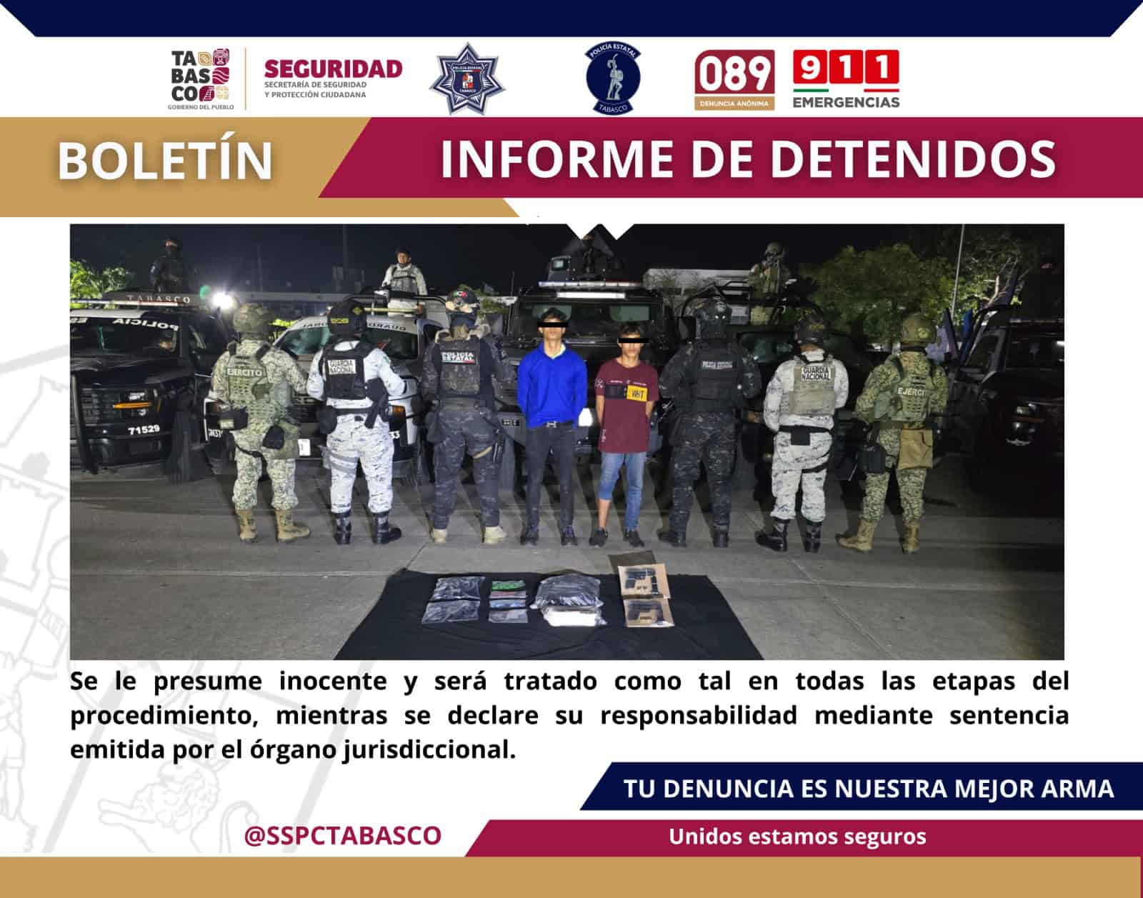 - Llevaron a cabo la detención de dos personas por su probable responsabilidad en delitos contra la Ley General de Salud, así como por la portación de armas de fuego.